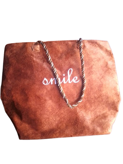 This stylish tote bag is designed for both elegance and everyday convenience. Made with a soft, suede-like texture, it features a clean modern look with the word “Smile” printed at the center, adding a simple yet chic touch. The spacious interior makes it perfect for work, shopping, school, or casual outings.