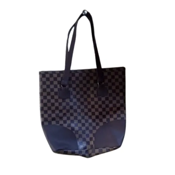 This elegant checkered tote bag features a timeless black-and-brown pattern paired with strong, long handles for comfortable carrying. Designed with reinforced bottom corners, it provides extra durability for daily use. Spacious, lightweight, and stylish, this tote is perfect for work, shopping, travel, or everyday essentials. A versatile fashion accessory that combines functionality with a classic modern look.