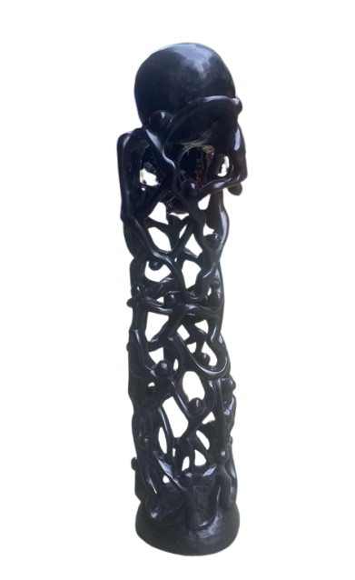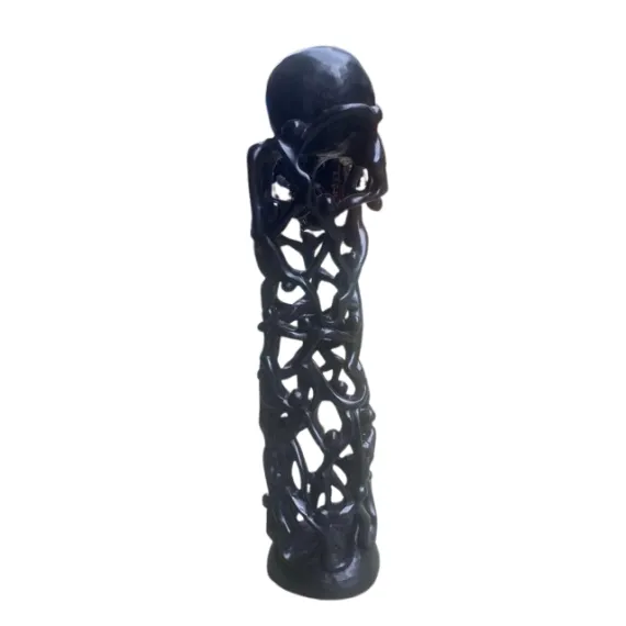 Celebrate the beauty of togetherness with this stunning hand-carved African sculpture, expertly shaped from richly polished hardwood. The piece features an intricate tower of interlinked human figures supporting one another as they rise toward a smooth, rounded apex. Each curve tells a story of connection, resilience, and collective strength. Perfect as a statement décor piece, this sculpture brings depth, culture, and artistic sophistication to any home, office, gallery, or gift collection