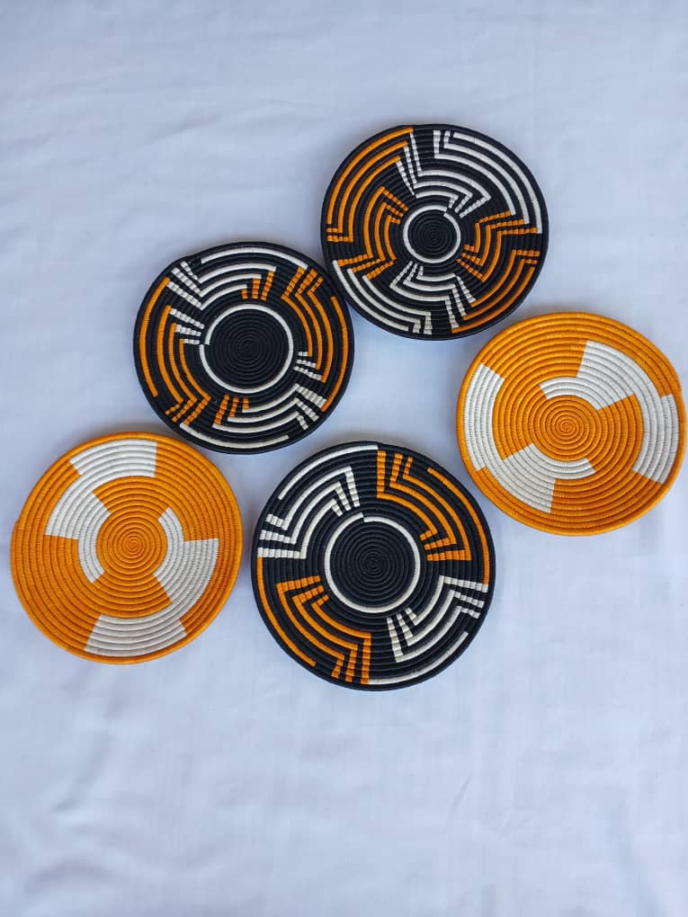 This handwoven wall décor adds beauty and warmth to any room. It features round designs with neat patterns in black, white, and mustard colors. You can hang them together or separately to decorate your living room, bedroom, or office. The handmade design gives your space a clean, natural, and stylish look.