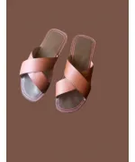 BellaStride Women’s Premium Leather Cross-Strap Slip-On Sandals – Brown