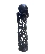 Unity Ascend: Hand-Carved African Ebony Figurine Tower Sculpture