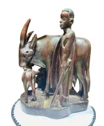 Hand-Carved African Pastoral Harmony Sculpture – Cow, Calf & Guardians