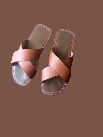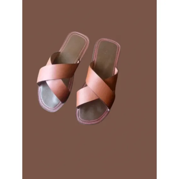 BellaStride Women’s Premium Leather Cross-Strap Slip-On Sandals – Brown